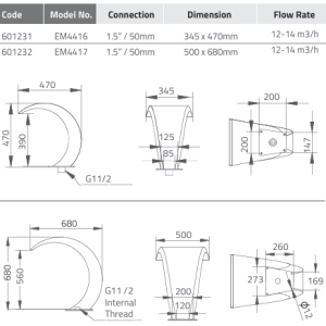 Các thông tin về thác nước cong EM4416 như sau: